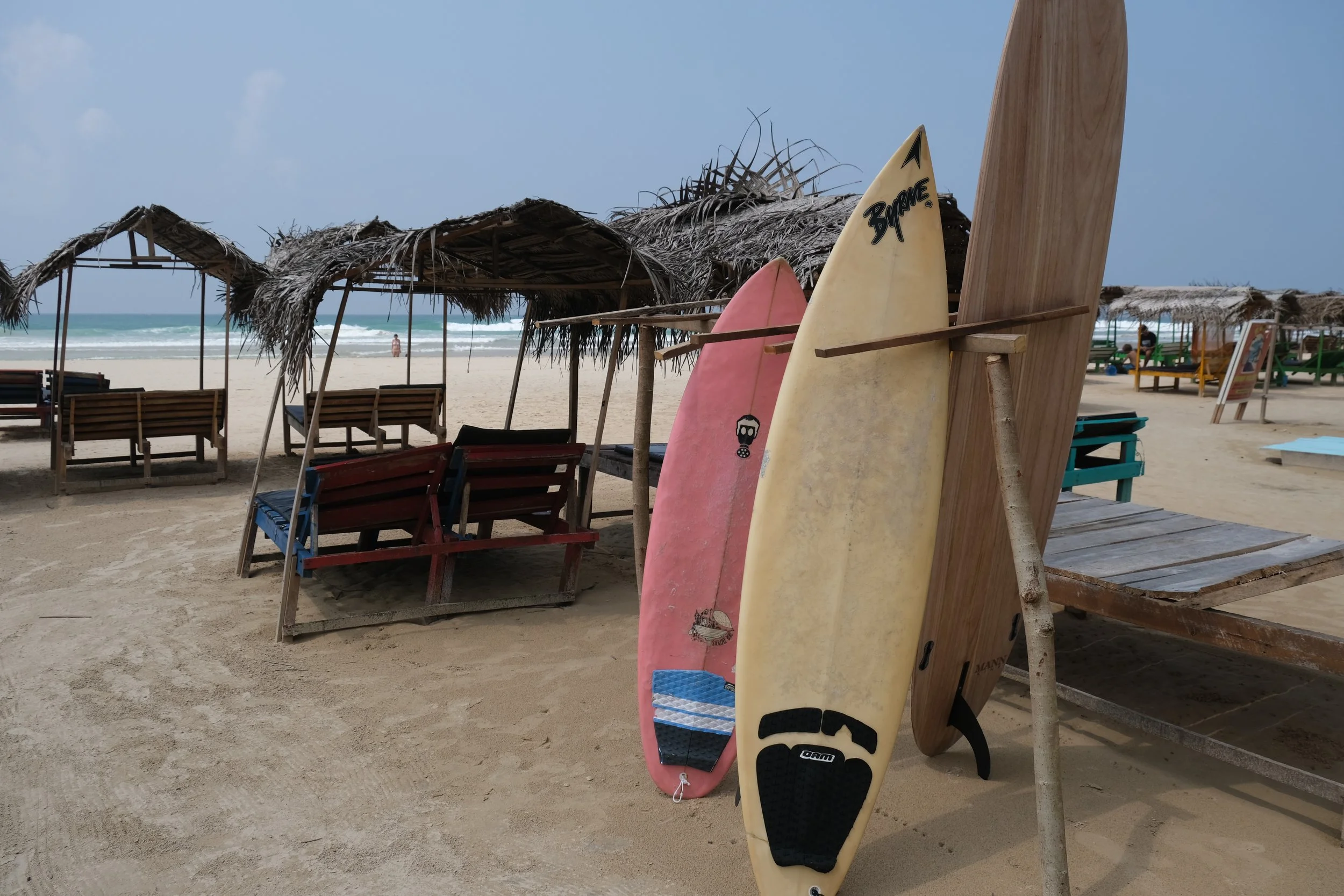 Unawatuna: More touristic, but waters should be good for swimming and many seaside cafes. Close to Unawatuna you find Angel Beach Club and Wijaya Beach - good for food and swimming.